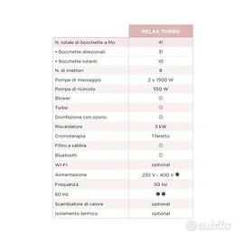 In vendita minipiscina da esterno a “sfioro” A700 RELAX TURBO con 41 getti, 2 pompe, riscaldata, bluetooth, cromoterapia.