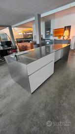 Cucina modello Gandhara Cestoni Laccati Bianco opaco, piano Inox,