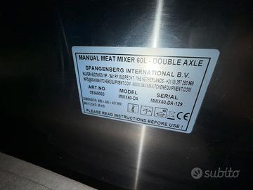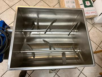 Vendo per inutilizzo miscelatore carne Maxima 60L utilizzabile sia manualmente tramite l’ausilio della sua maniglia originale che tramite il motore elettrico visibile in foto.