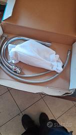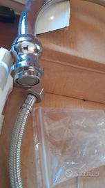 Miscelatore design cromato per bagno o per lavello cucina marca Bizzotto , esteticamente molto bello e robusto con tubi flessibili in rete acciaio da 45 cm e rompigoccia / salvagoccia di serie