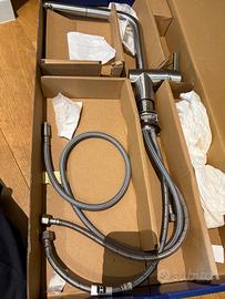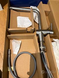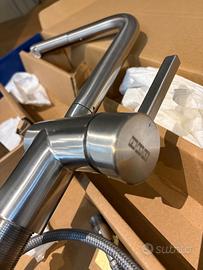 Vendo miscelatore da cucina FRANKE in acciaio satinato, design moderno ed elegante. Il rubinetto è in ottimo stato, completo di flessibili e accessori originali. Ideale per cucina moderna grazie alla finitura acciaio spazzolato resistente e facile da pulire.