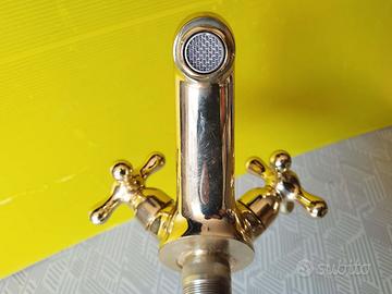 Miscelatore da bagno per bidè. Nuovo mai usato della Ideal Standard, compreso di guarnizioni per il montaggio (ancora sigillate). Mai usato e non presenta segni di rottura, ha soltanto qualche piccola riga leggera, ma non sono profonde e non ha segni di ruggine e le righe in foto non sono visibili. In ottone e placcato in oro ,su richiesta posso mandare altre foto. Costo euro 28, con possibile spedizione a basso costo. (Se interessati ne ho un altro uguale che vendo allo stesso prezzo)