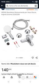 come da titolo vendo miscelatore per vasca da bagno, completo di doccetta modello grohe 3330220A senza scatola. Dopo aver acquistato casa nuova, il miscelatore è stato smontato con cura per cambio progetto del bagno. Mai usato, come nuovo senza scatola. il rompi getto è il suo originale. Prezzo più basso del web come da foto inserzione 140,12