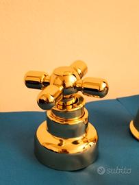 Miscelatore lavabo a tre fori, oro lucido, completo di scarico, asta con salterello e relativi pezzi accessori. Marca FIR Italia - NUOVO
