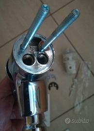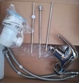 Nuovo mai installato, in ottone solido con finitura cromata, completo di raccordi filettati flessibili e piletta.
