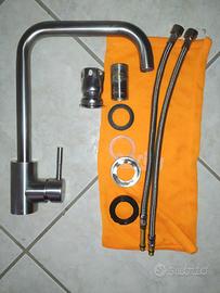 Rubinetto per lavello da cucina a canna alta per lavandino orientabile. Miscelatore per lavello da cucina a canna alta orientabile come da foto marca Casily,dal design moderno e massima funzionalità con l'affidabilità necessaria visto l'utilizzo quotidiano. Miscelatore a canna alta quadrata, composto da un beccuccio orientabile quindi utilizzabile per lavelli a due vasche completo di: 2 Flessibili Guarnizioni e Kit per montaggio pronto per essere utilizzato fin da subito. Usato ma ancora in ottime condizioni,per la consegna manualmente in zona con formula visto e piaciuto grazie.