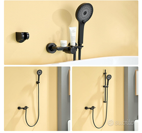 Miscelatore Vasca Auralum Nero Opaco Cascata + Doccetta 5 Getti Cerchi un tocco di design per il tuo bagno? Vendo splendido set Auralum per vasca da bagno, colore nero opaco, che unisce l'eleganza dell'effetto cascata alla praticità di una doccia multifunzione. Perché è speciale: Design 2-in-1: La parte superiore piatta del rubinetto funge da pratico ripiano portaoggetti (ideale per shampoo o bagnoschiuma), risparmiando spazio in bagno. Effetto Cascata: Getto ampio e costante che riempie la vasca rapidamente e con un'estetica da spa. Doccetta a 5 Getti: Doccino versatile con 5 modalità di erogazione, selezionabili facilmente con un tasto. Controllo Intuitivo: Una sola manopola per tutto! Giri a sinistra per la cascata, giri a destra per la doccetta. La regolazione della temperatura è fluida e precisa. Doppia Installazione: Puoi riporre la doccetta direttamente sul foro integrato nel rubinetto (comodo se sei seduto in vasca) oppure utilizzare il supporto a muro regolabile incluso. Caratteristiche tecniche: Finitura: Nero opaco (Anti-impronta e moderno). Tubo flessibile: 1,5 metri in PVC/Acciaio (resistente e antigraffio). Materiale: Corpo robusto di alta qualità. Componenti inclusi: Miscelatore, doccetta multifunzione, tubo da 1500 mm, supporto a muro e kit di montaggio. Condizioni: Nuovo, mai installato completo di scatola e tutti gli accessori 📦 Spedizione: Spedisco velocemente con imballaggio protettivo extra per preservare la finitura nera.