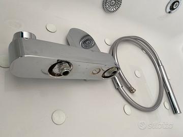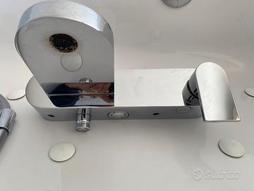 Miscelatore vasca usato una decina di volte. Ho sostituito la vasca idromassaggio con una doccia e questo miscelatore mi è rimasto a casa. Pezzo lungo 28 cm con i due fori a 15 cm di distanza.