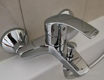GROHE Eurosmart Art. 33302002 – Set Miscelatore Vasca/Doccia Completo DESCRIZIONE PROFESSIONALE Il miscelatore monocomando GROHE Eurosmart (Art. 33302002) rappresenta la sintesi perfetta tra durabilità meccanica e design ergonomico. Progettato per installazioni esterne a parete, è la scelta d’elezione per capitolati residenziali e strutture ricettive che richiedono standard qualitativi elevati e manutenzione ridotta. TECNOLOGIE INTEGRATE: GROHE SilkMove: Cartuccia a dischi ceramici da 35 mm per una fluidità di manovra e una precisione del mix termico costante nel tempo. GROHE StarLight: Cromatura ultra-resistente ai graffi e alla corrosione, garantita per mantenere la lucentezza originale anche dopo anni di pulizie frequenti. GROHE EcoJoy: Sistema di risparmio idrico integrato (portata limitata a 9,5 l/min) che ottimizza i consumi senza penalizzare il comfort del getto. Sicurezza e Igiene: Dotato di valvola di ritegno integrata per prevenire il riflusso di acqua scaricata e limitatore di temperatura regolabile. CONTENUTO DEL SET (KIT INTEGRALE): A differenza delle versioni economiche (solo corpo), l'articolo 33302002 è un set completo pronto all'uso: Miscelatore Esterno con deviatore automatico vasca/doccia. Manopola Doccia (Getto Rain) con ugelli anticalcare SpeedClean. Supporto Doccia Fisso a parete. Flessibile Relexaflex da 1500 mm con attacchi standard da 1/2". 🔴 OFFERTA AZIENDALE SOTTOCOSTO 🔴 PREZZO PROMO: € 69,00 (IVA Inclusa) Proponiamo questo kit a un prezzo leader di mercato, posizionato sensibilmente al di sotto delle medie della grande distribuzione online per il set completo. Condizioni: Prodotto nuovo, sigillato in imballo originale. Garanzia: 5 anni ufficiale GROHE. Disponibilità: Stock limitato a esaurimento scorte.