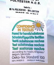 L'etichetta Oeko-Tex Standard 100 indica che il produttore è certificato come ambientalmente ecocompatibile sia nei processi che negli stabilimenti, oltre che testato per verificarne l'assenza di sostanze nocive.