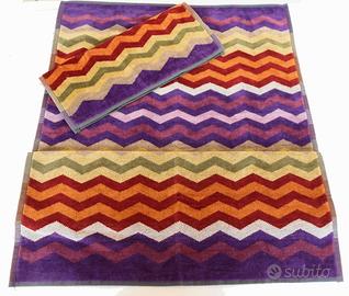 Set asciugamani 100% cotone velour, nel famoso chevron MISSONI, tessuto, non stampato, che comprende