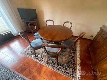 Vendo mobili soggiorno d’epoca, credenza soggiorno (240 x 45 x 100cm ) e tavolo tondo con 6 sedie (diamtro tavolo 120 x 80 cm ) con due polunghe.