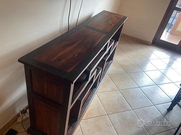 Vendo mobile porta TV / credenza in legno massello, colore noce scuro, stile rustico.