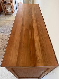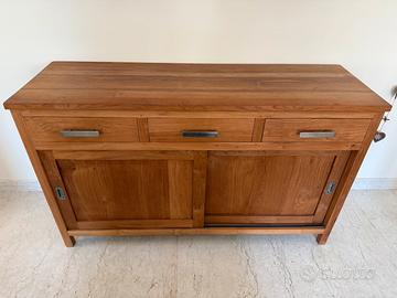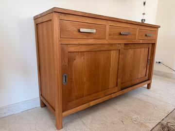 mobile - credenza cucina o sala da pranzo in legno naturale con due ante scorrevoli e tre cassetti. misure : l 148 x p 47 x h 90