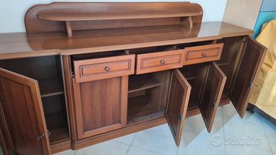 Vendo mobile e tavolo coordinati, in ottime condizioni, il tavolo è già smontato. Regalo le sedie, 1 tavolo rotondo allungabile con qualche imperfezione e 1 tavolo con piano in granito con il legno un po' rovinato. Vendo anche separatamente. Si trovano ad Abano. Contattare il 333-3554629.