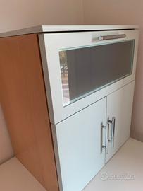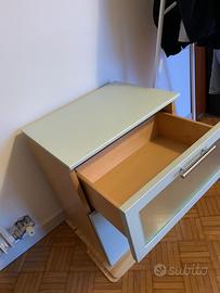 Mobile bicolore verde pastello e noce. Misure 50x38 h58 cm. Cassetto superiore e ante inferiori