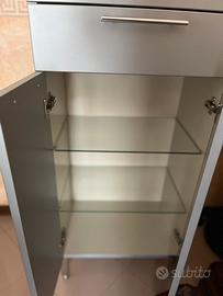 Ha due ante in basse molto capienti e 3 cassettoni altrettanto capienti. Utilizzato come porta asciugami e medici. In condizioni ottime.