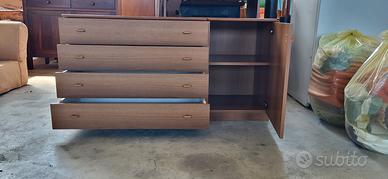 Mobile con 4 cassettoni ampi per riporre vestiti, coperte ecc. Nella parte destra del mobile c'è un'anta con due comodi ripiani