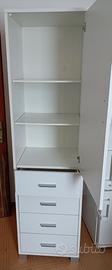 Mobile colonna in laminato con 1 anta a ripiani e 4 cassetti. Cm 184x41 prof. x 50 largh. Colore bianco.