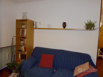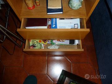 Vendo mobile a colonna in legno composto da colonna con cassetti e mensola a sbalzo con struttura di sostegno a scomparsa.