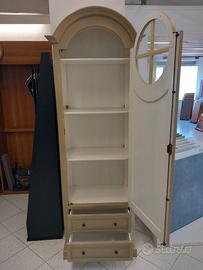 Colonna utilizzabile come dispensa o altro in legno laccato. Misure L 70 P 45 H 230 cm disponibile anche un'altra uguale per fare la coppia. Un'anta in legno e vetro più due cassetti. Nuova.