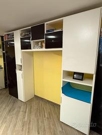 Vendo perfetto mobile a ponte da soggiorno o salotto in legno satinato bianco e ante in vetro color moka.
