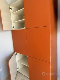 Mobile ponte versatile Bellissimo Mobile legno a ponte per camera, cameretta, sala o studio. Moduli contenitori scomponibili. Misure: Larghezza: 3,10mt; altezza: 2,20mt; profondità: 60cm Misure vano per accogliere letto o divano: 1,65mt Smontaggio e trasporto a carico dell'acquirente.