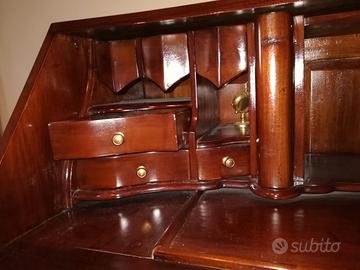 Vendesi mobile a ribalta in legno massello di mogano di pregevole fattura con tre cassetti e pronto da collocare a casa. I piedi anteriori presentano un motivo zoomorfo, mentre, nella parte bassa, si trova un fregio floreale. All'interno della ribalta sono presenti molti cassettini di varie dimensioni e tipologia (uno anche segreto), il mobile è stato recentemente lucidato. Dimensioni: larghezza 90 cm, profondità 50 cm, altezza 100 cm. Vero affare da visionare a Messina.