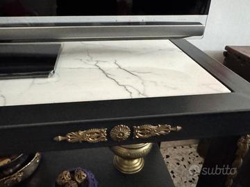 Mobile a ripiani in ferro battuto e marmo