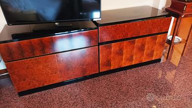 mobile a scala in 3 pezzi con piano nero lucido e sportelli in radica. Ottimo stato