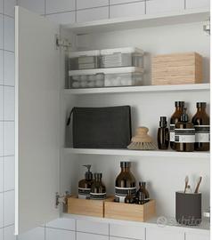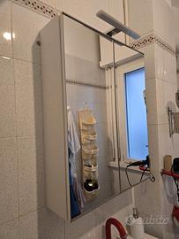 Pensile a due ripiani pari al nuovo con ante a specchio, nessun difetto o segno di usura. vendo con luce già montata sopra (come da foto).