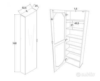 Mobile a specchio con ripiani. Per le dimensioni scorrere le foto. Usato per pochissimi mesi. Decido di venderlo a seguito di un trasloco.