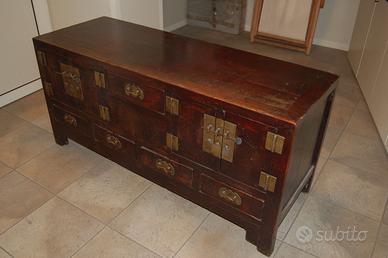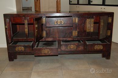 Mobile a sportelli e cassetti, maniglie a motivo di pipistrelli. Cina sec XX - Dimensioni: 132 x 46 cm - h 62 cm