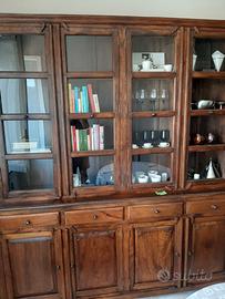 Mobile con vetrinetta per soggiorno o libreria per studio Ottime condizioni . 4 ante 4 cassetti Misure 48prof x 215lung 100alt parte bassa 30prof x 200lung 140alt parte alta a vetri Altezza totale 240 Contatti offerte o info via mail