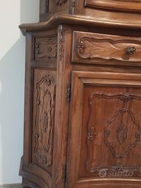 Mobile a vetrinetta eseguito artigianalmente da un ebanista di Viverone (Zola). Buonissime condizioni, cm. 135 x 50 x h. 215, 2 ante superiori, 2 ante inferiori, 2 cassetti