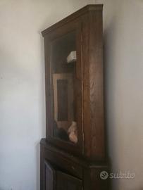 Armadio ad angolo, legno massello, anni 50. Originariamente utilizzato per ospitare fucili da caccia.