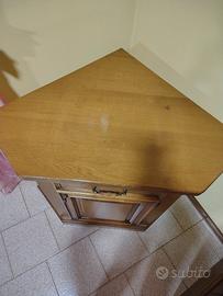 mobile ad angolo in legno con cassetto ed anta, misure 73x73x104