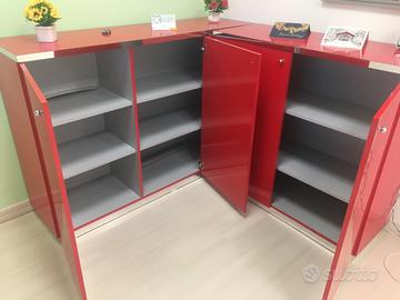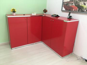 Vendo mobile laccato rosso nuovissimo per cambio arredo. Da ufficio o casa misure lato a 160 cm lato b 160 cm. All'interno ripiani senza un graffio. Vera occasione!!