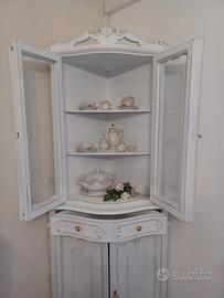 mobile vetrina in noce rifatta in stile shabby color bianco, misure lato 64×64 H204 divisibile, Seguici su Facebook SHABBY CHIC Sandra Tamiazzo 3283714775 Davide Finotto 3282882270