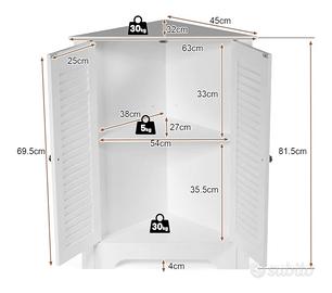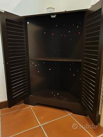Mobile Angolare, Armadietto ad Angolo con 3 Livelli Ripiani, con 2 Ante e Ripiano Regolabile in Altezza, per Bagno, Ingresso, Soggiorno, Camera da Letto (marrone scuro).