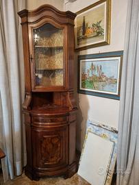 Elegante angoliera con vetrina in radica di noce – mobile classico 216 cm