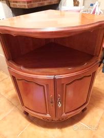 Mobile angolare/Console porta tv in legno antico stile classico con ripiano e armadietti. Ideale per sala/salotto/disimpegno Misure: Altezza 105 cm Larghezza 80 cm Il mobile è in ottimo stato e ben conservato. Vendo per necessità di spazio