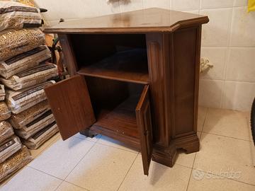 Mobile ad angolo di legno. Era utilizzato da me in sala per sostenere la tv, resistente e ben tenuto esattamente come in foto. Altezza 80 cm, larghezza 98, profondità 68.
