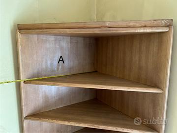 Vendo mobile angolare in legno massello, perfetto per ottimizzare gli spazi e sfruttare gli angoli della casa. Dotato di 4 ripiani triangolari molto capienti, ideale come libreria, scaffale per oggetti decorativi o mobile da cucina.