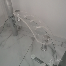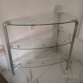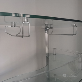 Vendo a malincuore causa trasloco, bellissimo mobile/angolo bar in cristallo spesso 60mm,formato da 3 piani molto spaziosi con 8 portabottiglie singoli e 2 strisce portabicchieri sospesi.