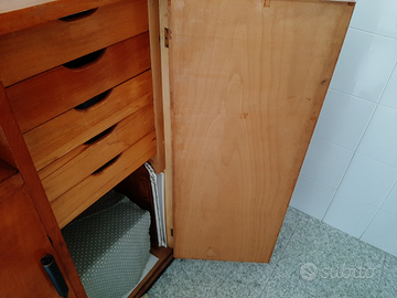Vendo madia militare anni 50 in buone condizioni generali con ante laterali e una centrale con cassettiera.Misure H 1,23 Largh. 46 e lunghezza 174.