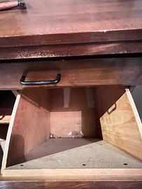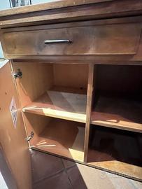 Mobile in legno dallo stile rustico, compatto e versatile. Dotato di 2 cassetti, 2 ante e vano centrale con ripiano. Struttura solida, in buone condizioni con naturali segni d’uso. Perfetto per cucina, soggiorno o taverna. Prezzo trattabile