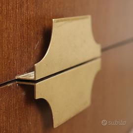Impiallacciato in legno esotico, si fa apprezzare per le maniglie e i piedini in