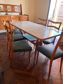 Coppia di mobili da sala più tavolo e sei sedie degli anni sessanta tenuti molto bene