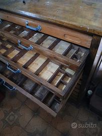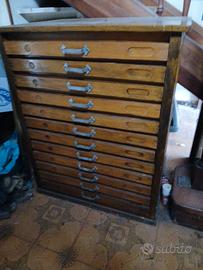 Mobile completo e riverniciato circa 30 anni fa', da Tipografia; conteneva i diversi tipi di carattere da stampa; vecchio di almeno 75/80 anni. Maniglie e suddivisioni interne mai toccate. 12 cassetti, misure piano cm.82 x 65 . Mobile vero e proprio cm.77 x 64.Altezza cm. 100 circa. Oggetto non spendibile, consegna a mano, ad Alessandria zona circonvallazione P. T. comodo da tutte le autostrade. Prezzo trattabile solo ragionevolmente.